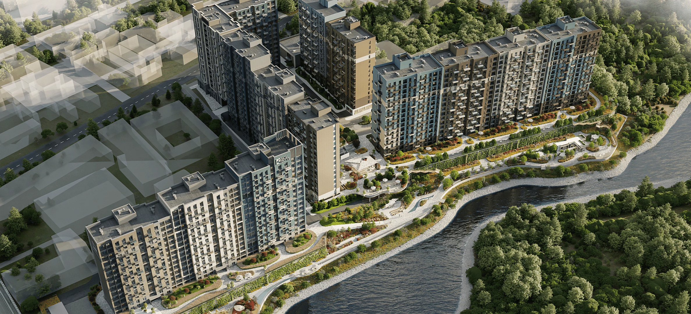 Стиль жизни на берегу реки воплощается в нашем новом жилом комплексе с собственной набережной и благоустроенной территорией.